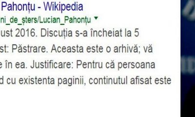 In anul 2016, Lucian Pahontu insusi, asa cum se observa in imaginea alaturata, si-a exprimat dorinta ca niste informatii despre el sa fie sterse de pe...