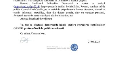 Reacția la publicarea informațiilor confidențiale După ce articolul Sindicatului Polițiștilor Diamantul a adus la lumină faptul că șeful Poliției Municipiului Roman a înființat grupuri pe WhatsApp...