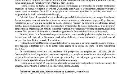 În urma sesizărilor primite din partea colegilor noștri din țară care au fost admiși la programul de masterat profesional în cadrul Academiei de Poliție ”Alexandru Ioan...