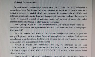 De la nivelul D.O.P. s-a transmis o circulară către unitățile teritoriale prin care s-a informat cu privire la modificarea fișelor de post – cadru, dezvaluie cei...
