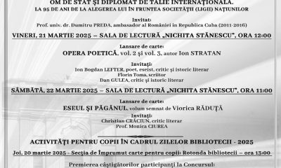 O săptămână de evenimente pentru a celebra un secol de istorie și a privi spre viitor Ploiești, 18 martie 2025 – Biblioteca Județeană „Nicolae Iorga” Ploiești...