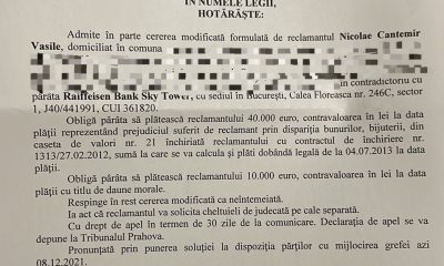 Dupa o lupta de opt ani de zile, precum si dupa cinci ani de zile de tinut la „sertar” al dosarului penal de catre conducerea IPJ Prahova de la aceea data, un om de afaceri din Prahova obtine, in prima instanta, 40.000 euro, contravaloarea in lei a prejudiciului suferit prin disparitia bijuteriilor de la Raiffesen Bank Agentia 1 Ploiesti si 10.000 euro daune morale