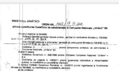 Jurnalistul Victor Ciutacu a publicat pe Facebook Ordinul Ministrului Sanatatii nr. 1023 din 17 octombrie 2012 privind constituirea Consiliului de Administratie al Companiei Nationale „Unifarm” SA....