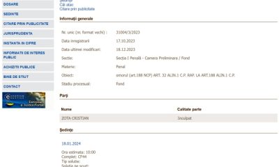 Judecatorul Victor-Horia-Dimitrie Constantinescu de la Tribunalul Bucuresti a stabilit pentru 18 ianuarie 2024 primul termen al fondului