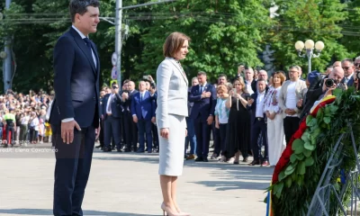 Nicușor Dan și Maia Sandu, omagiu la Chișinău: Coroane de flori și scandări unioniste la Monumentul lui Ștefan cel Mare