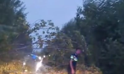 Polițiștii gorjeni, eroii neașteptați ai furtunii: Au deblocat un drum blocat de un copac prăbușit