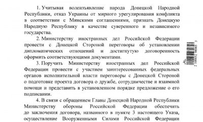 Putin a semnat decretul pentru independența Donețk și Lugansk