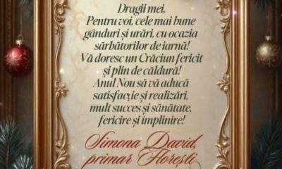 Sărbători de iarnă: Primarul Simona David adresează floreștenilor un mesaj de căldură și optimism