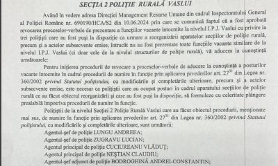 Sefa SRU de la IPJ Vaslui a incalcat de mai multe ori un text foarte clar dintr-o lege in vigoare