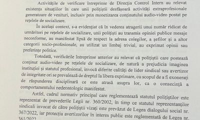 Către, MINISTERUL AFACERILOR INTERNE în atenţia domnului viceprim-ministru, ministru al M.A.I. Marian-Cătălin PREDOIU Stimate domnule Viceprim-ministru şi ministru al M.A.I., Sindicatul Polițiștilor din România „Diamantul”, în...