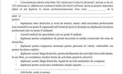 Grupul de Comunicare Strategică a transmis duminică MODELUL declarației pe proprie răspundere referitoare la circulația persoanelor în afara locuinței/gospodăriei și modelul adeverinței de la angajator, conform...