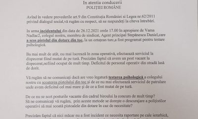 „Stau și mă uimesc pe zi ce trece și mă întreb oare cine a fost „genialul” care l-a trimis la psiholog pe colegul nostru că a îndrăznit să scoată pistolul din toc”