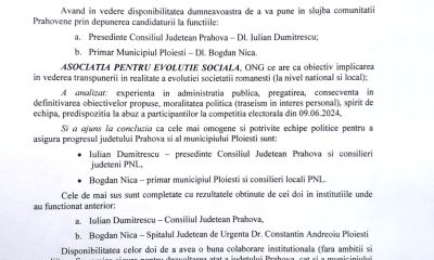 Un nou sprijin pentru echipa Iulian Dumitrescu (presedintele Consiliului Judetean Prahova) – Bogdan Nica (primarul municipiului Ploiesti) si din partea Asociatiei Pentru Evolutia Sociala