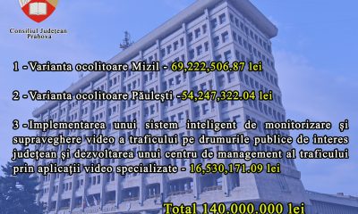 𝐅𝐢𝐧𝐚𝐧𝐭𝐚𝐫𝐞 𝐩𝐞𝐧𝐭𝐫𝐮 𝐯𝐚𝐫𝐢𝐚𝐧𝐭𝐞𝐥𝐞 𝐨𝐜𝐨𝐥𝐢𝐭𝐨𝐚𝐫𝐞 𝐌𝐢𝐳𝐢𝐥 𝐬𝐢 𝐏𝐚𝐮𝐥𝐞𝐬𝐭𝐢 𝐬𝐢 𝐩𝐫𝐨𝐢𝐞𝐜𝐭𝐮𝐥 𝐩𝐫𝐢𝐯𝐢𝐧𝐝 𝐦𝐨𝐧𝐢𝐭𝐨𝐫𝐢𝐳𝐚𝐫𝐞𝐚 𝐯𝐢𝐝𝐞𝐨 𝐩𝐞 𝐝𝐫𝐮𝐦𝐮𝐫𝐢𝐥𝐞 𝐣𝐮𝐝𝐞𝐭𝐞𝐧𝐞! Varianta ocolitoare Mizil – 69,222,506.87 leiVarianta ocolitoare Păulești – 54,247,322.04 lei...
